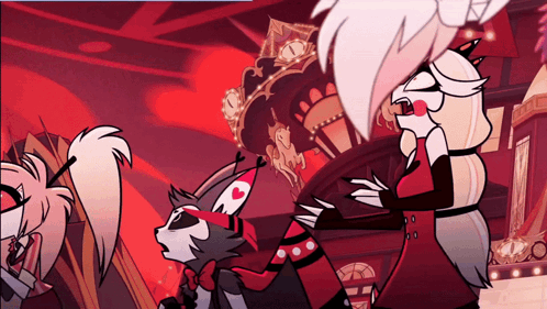 Content Description: a group of cartoon characters are standing in front of a carnival ride