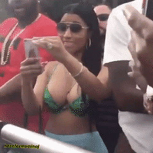 Content Description: a woman in a bikini is taking a picture of herself with her phone