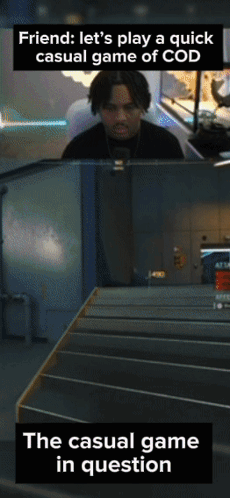 Content Description: a screenshot of a video game with the caption friend let 's play a quick casual game of cod