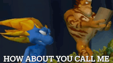 - Content Description: two cartoon characters are standing next to each other with the words " how about you call me " written below them