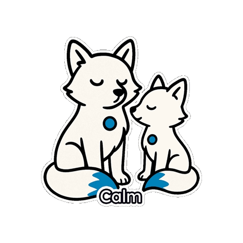 Content Description: two foxes are sitting next to each other and the word calm is on the bottom