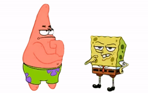 Content Description: patrick star and spongebob squarepants are standing next to each other on a white background