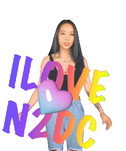 Content Description: a woman making a heart with her hands and the words i love n2dc