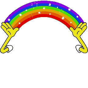 Content Description: a cartoon of a rainbow with a pair of hands holding it
