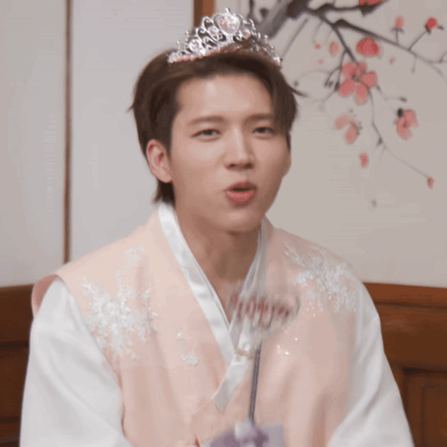 Content Description: a young man wearing a tiara and a kimono