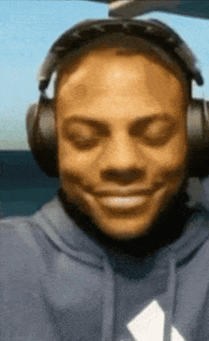 Content Description: a man wearing headphones and a blue hoodie smiles