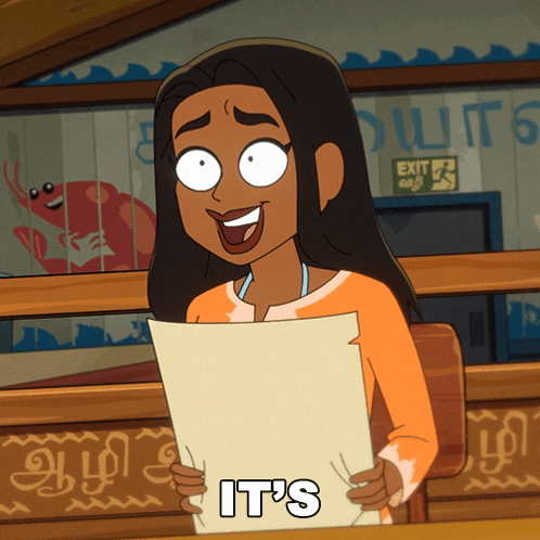 Content Description: a cartoon woman is holding a piece of paper that says it 's on it