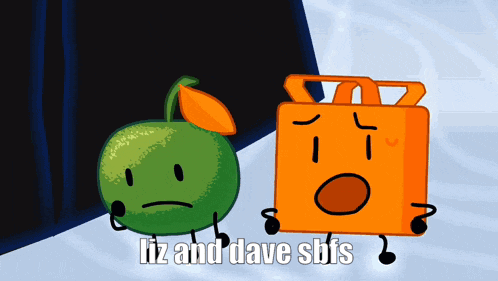 - Content Description: a green apple and an orange box are standing next to each other with the words liz and dave sbfs on the bottom