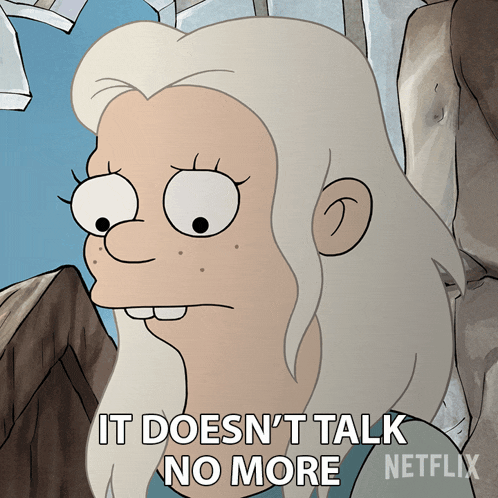 Content Description: a cartoon character says it does n't talk no more on netflix