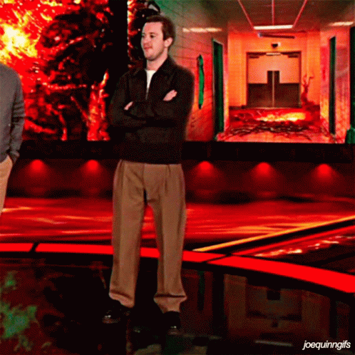Content Description: a man with his arms crossed stands in front of a screen that says joequininggifs