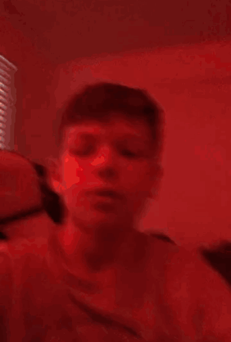Content Description: a close up of a person 's face in a red room .