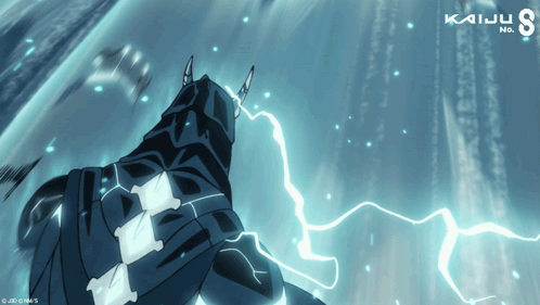 Content Description: a poster for kaiju no 8 shows a lightning bolt coming out of the ground