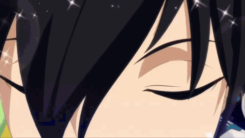 Content Description: a close up of a person 's face with their eyes closed and sparkles .