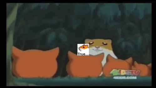 Content Description: a cartoon of a hamster with the word true on the bottom