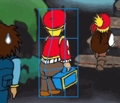 Content Description: a cartoon drawing of a boy with a blue box