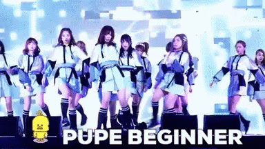 Content Description: a group of girls are dancing on a stage with the words " pupe beginner " in the background