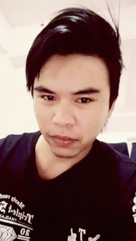 Content Description: a close up of a man 's face wearing a black shirt and looking at the camera .