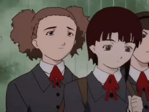 Content Description: a group of anime girls are standing next to each other and one of them has a red bow on her tie