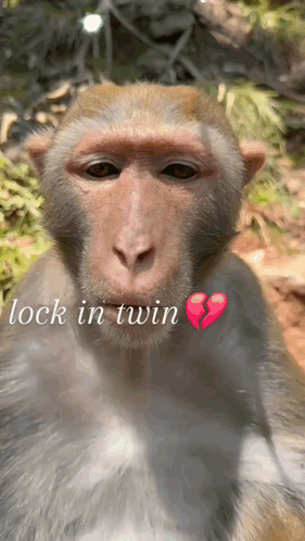 Content Description: a close up of a monkey with the words lock in twin written on it