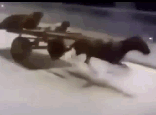 Content Description: a horse drawn carriage is driving down a snowy street .
