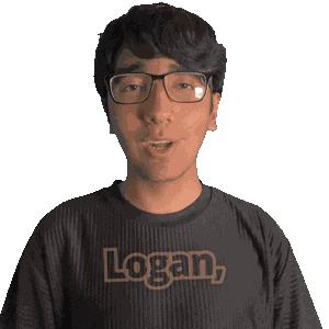 Content Description: a man wearing glasses and a black shirt that says logan on it