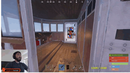 Content Description: a man playing a video game with the number 1049/1000 on the screen