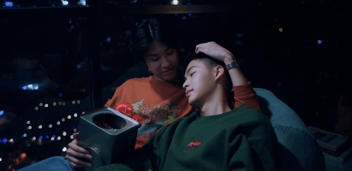 Content Description: a man wearing a green sweatshirt that says ' tommy hilfiger ' on the front