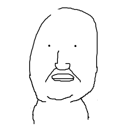 Content Description: a black and white drawing of a man 's face with a slight smile .