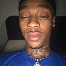 Content Description: a man wearing a blue shirt and a necklace is sitting in a car with his eyes closed .