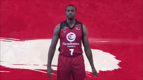 Content Description: a man in a casademon zaragoza jersey stands in front of a red background