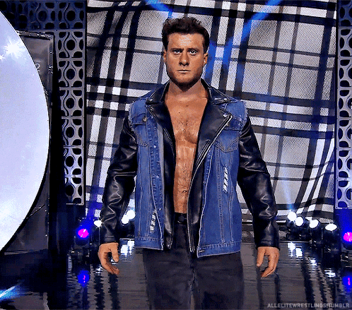 Content Description: a man in a denim jacket and leather sleeves is standing in front of a checkered wall ..