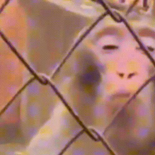 Content Description: a monkey is behind a chain link fence and looking at the camera .