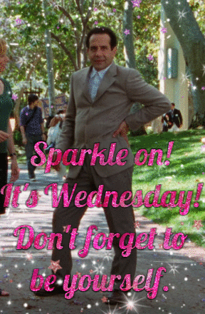 Content Description: a man in a suit stands in front of a sign that says sparkle on wednesday do n't forget to be yourself