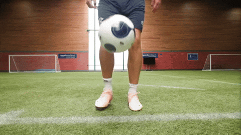 Content Description: a man is kicking a soccer ball on a field with a sign that says sports academy in the background