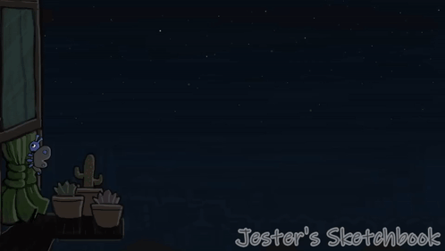 Content Description: jester 's sketchbook shows a blue cartoon character