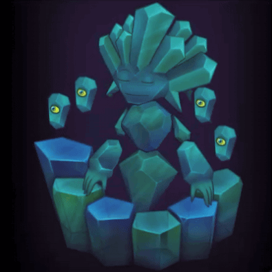 Content Description: a cartoon character with yellow eyes is sitting on a pile of rocks