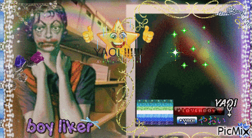 Content Description: a picture of a man with the words boy liker written on it