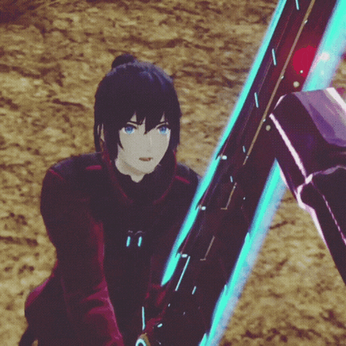 Content Description: a girl with blue eyes is holding a sword in her hand