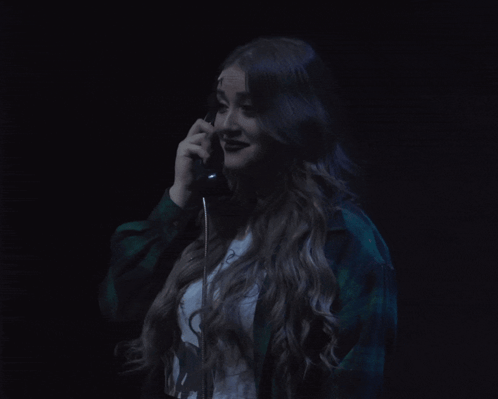 Content Description: a woman in a plaid jacket is talking on a telephone
