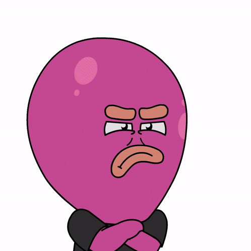 Content Description: a cartoon of a pink balloon with an angry face on it