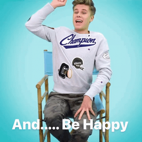 Content Description: a young man wearing a champion sweatshirt is sitting in a chair