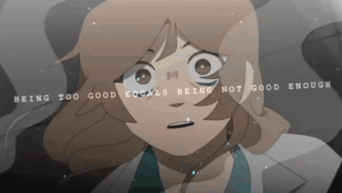 Content Description: a cartoon of a girl with the words being too good equals being not good enough above her