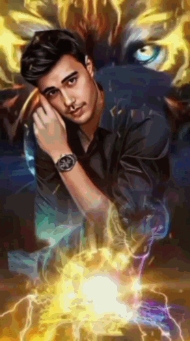 Content Description: a man with a watch on his wrist is standing in front of a tiger