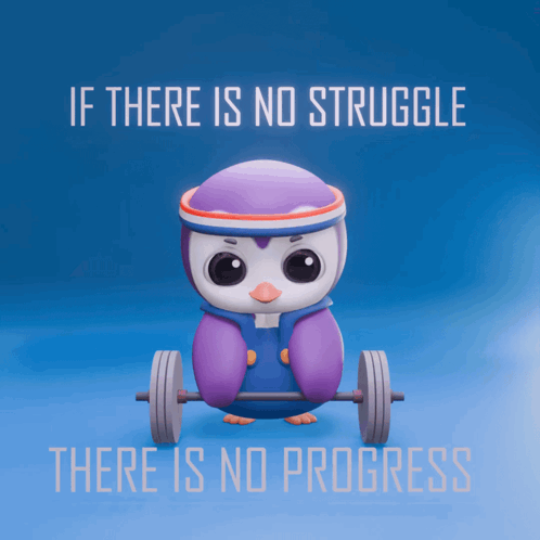 Content Description: a cartoon penguin lifting a barbell with the words if there is no struggle there is no progress