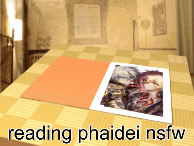 Content Description: a picture on a table with the words reading phaidei nsfw below it