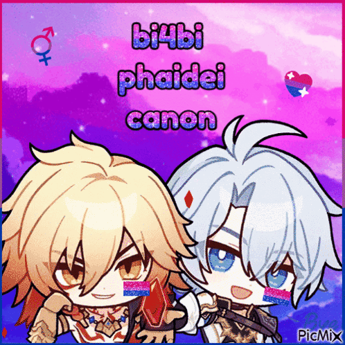 Content Description: a picture of two anime characters with the words bi4bi phaidei canon below them