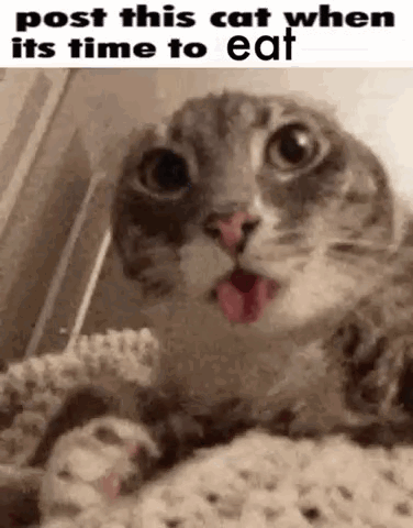 Content Description: a cat with its tongue hanging out is laying on a blanket .