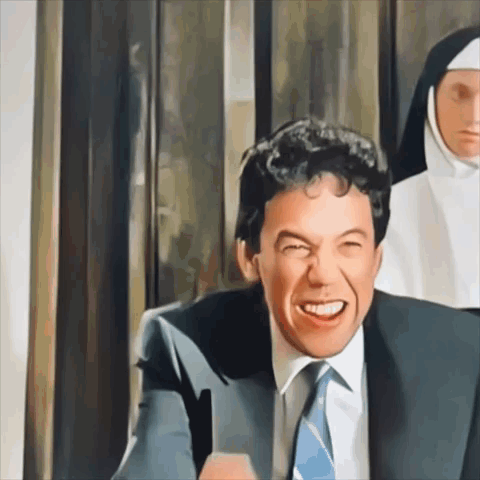 Content Description: a man in a suit and tie is smiling with a nun in the background