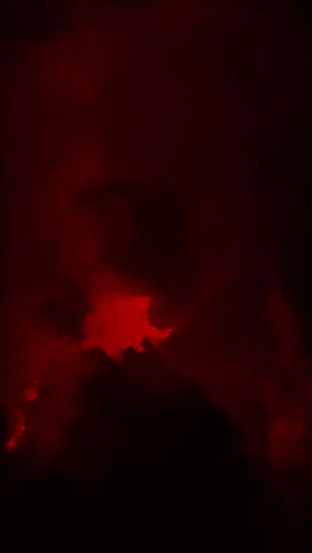 Content Description: a painting of a red lightning bolt with a skull in the background