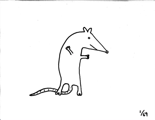 Content Description: a black and white drawing of a rat with bones on its back .